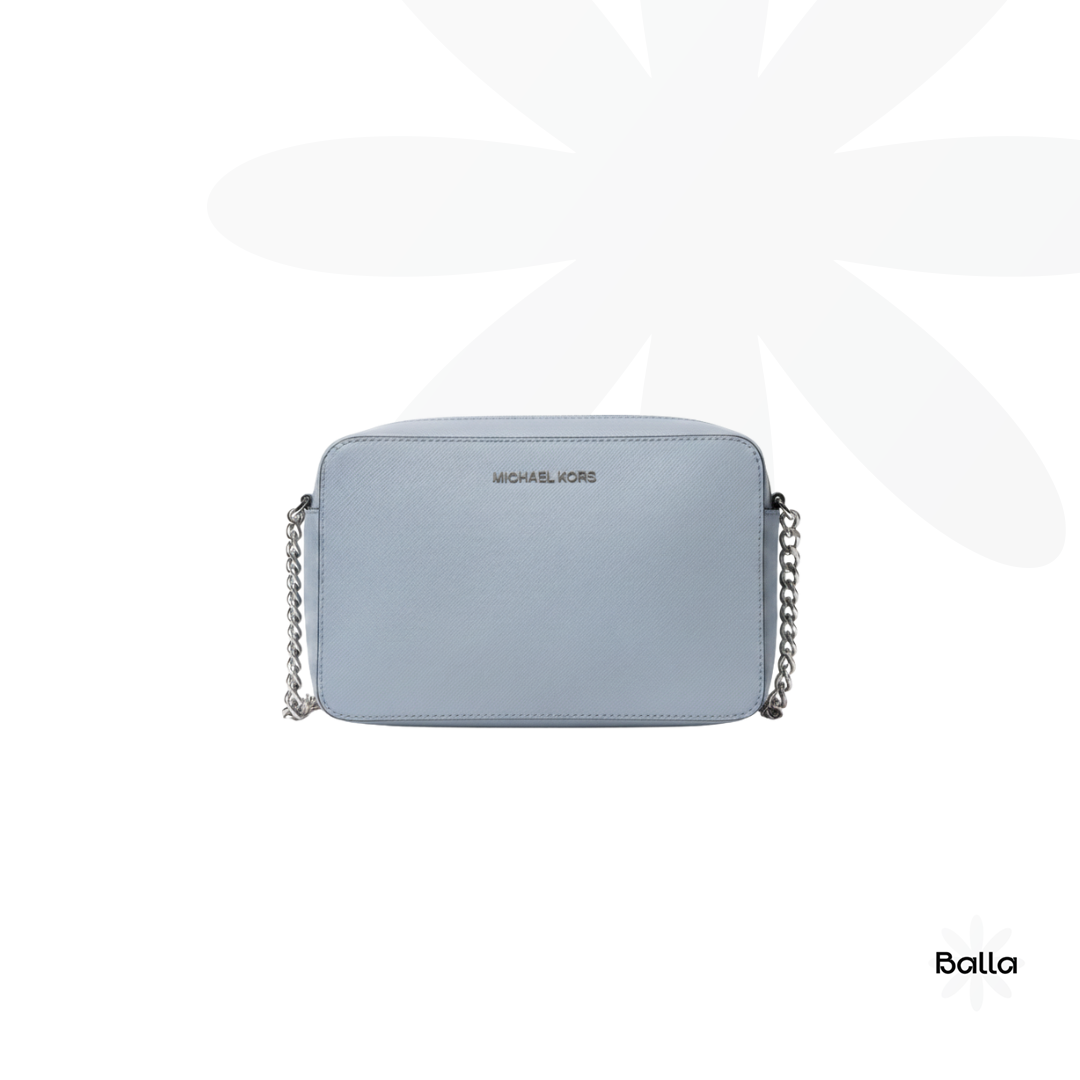 Michael Kors Powder Blue Leather Jet Set Crossbody Bag chain link strap